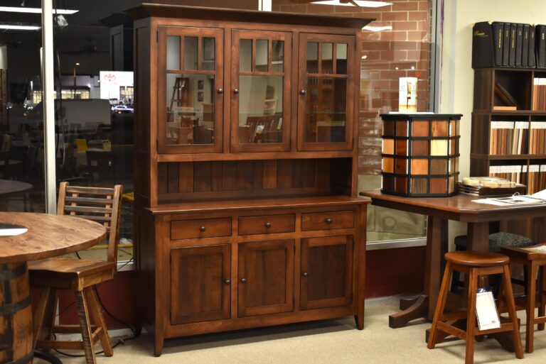 This 63″ x 20″ x 83″ Hutch is handcrafted in America with all-natural, solid Brown Maple and is built to last! It can be customized the way you want by choosing your style, size, wood, color, and more, in order to fit your needs and your home perfectly!