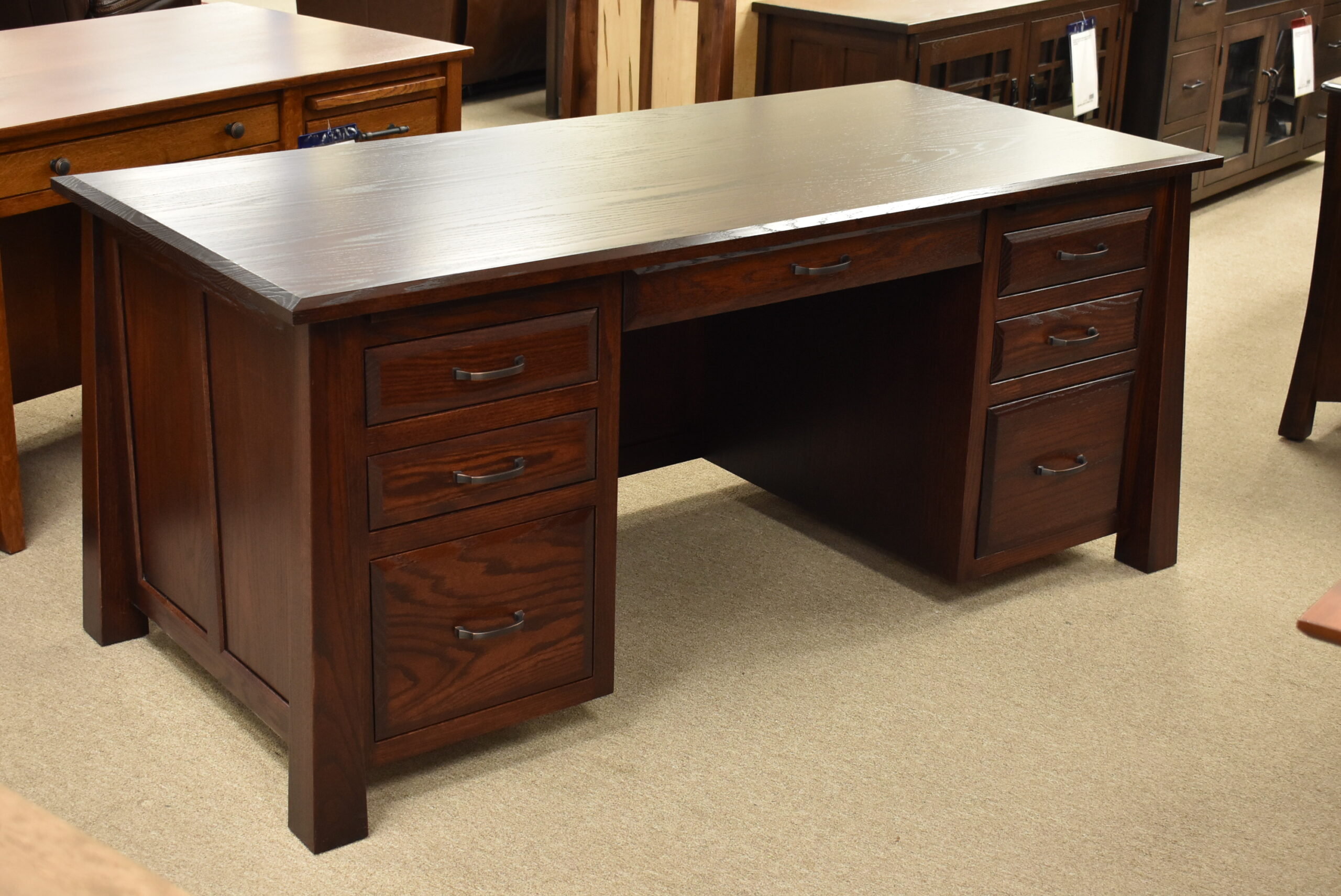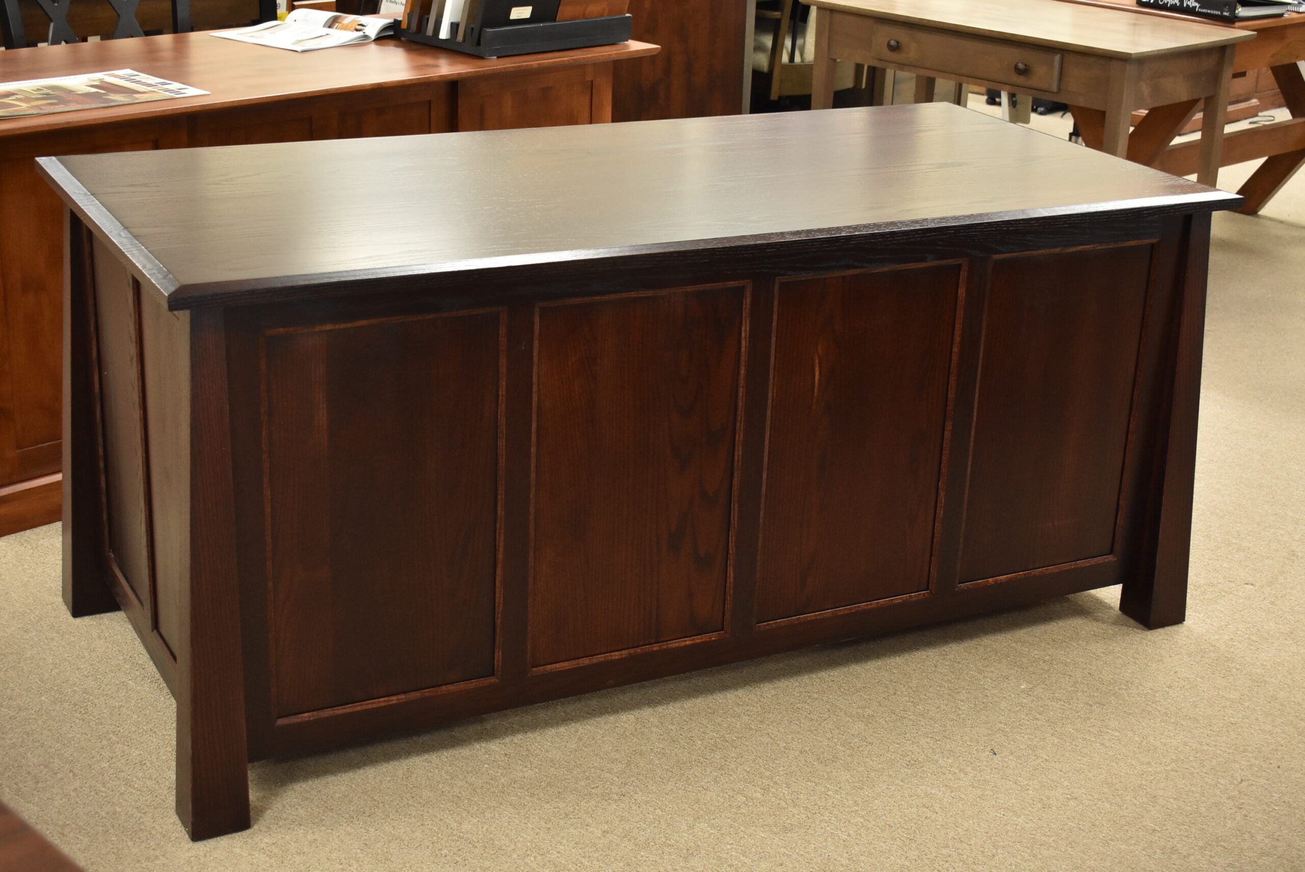 This 32″ x 68″ x 30″ high Executive Desk is handcrafted in America with all-natural solid wood and is built to last. You can customize it the way you want by choosing your style, size, wood, color, hardware, and more, in order to fit your needs and your home perfectly!