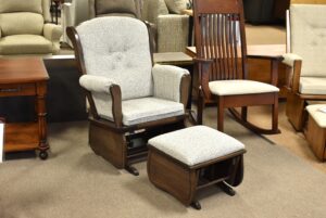 At O’Reilly’s Furniture, you can get custom-made gliders and rockers that will suit your exact needs. For upholstered pieces, choose from over 1000 fabric and leather options. For wood pieces, choose your size, wood, and color. If you see something that you like as shown, you can always buy directly off our showroom floor in Libertyville, IL.